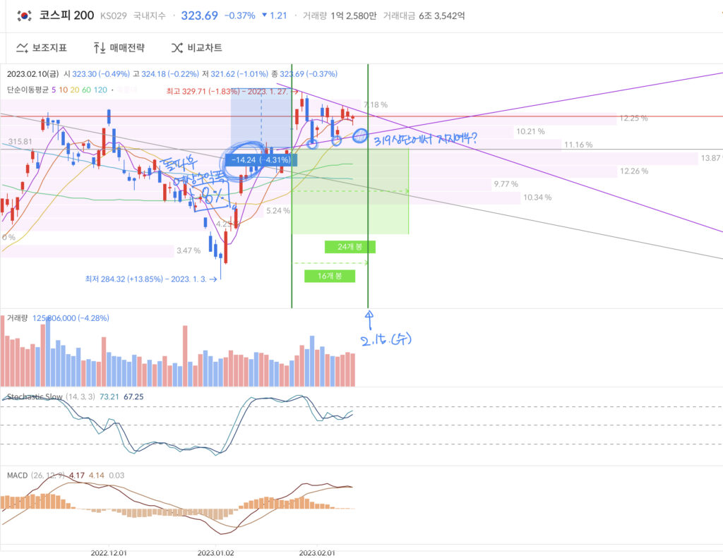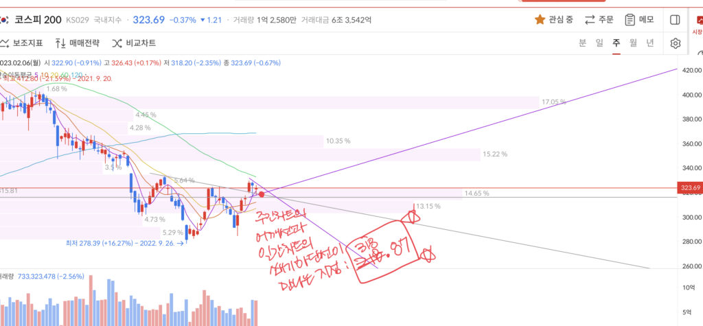 - 318.87이 붕괴되는 경우를 대비 소액을 인버스 상품에 투자하고, 주간차트 마감까지 기다린 후 손절